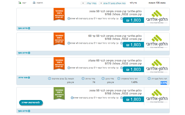 איזה מוצרים- נבחר את מוצרים שאנחנו רוצים להשוות בהם את דמי הניהול- לדוגמא קופת גמל, פנסיה חדשה מקיפה, פנסיה חדשה כללית או ביטוח מנהלים.